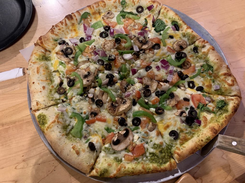 If you are looking for a quick and reasonable lunch, there are different combos including slices of pizza, house salad and beverage. I’ve tried several of their salads for dinner and they are definitely a meal. My favorite pizza is an all vegetable/garden variety one and there are many more to choose from. If you like to make a meal out of an appetizer, order the nachos and recruit a friend to help eat that. You won’t be disappointed!